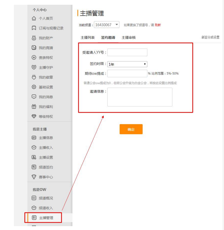 邀请签约:实名认证通过后,由频道OW主动邀请,填写相关资料,发出邀请后,主播可在虎牙直播个人中心“我的消息”收到通知:http://i.huya.com/index.php?m=Msg&do=listMsg