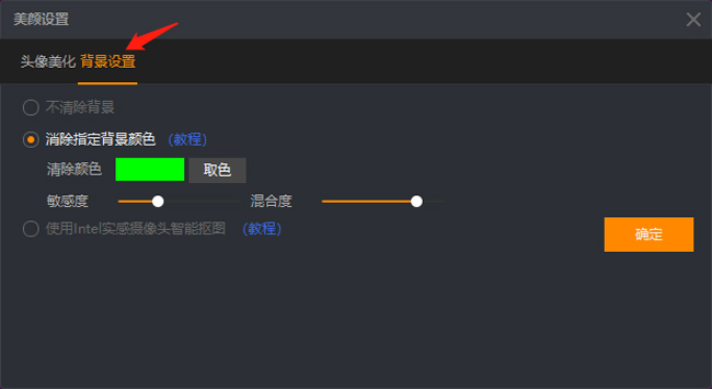 1、点击“背景设置”,勾选开启关键色,点击“拾取”按钮,然后鼠标移动到摄像头画面中,选取关键色。