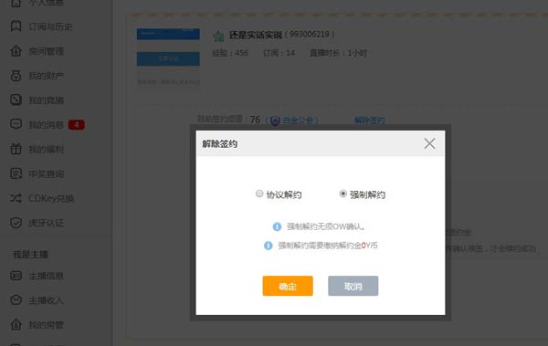 非白金公会主播主动解约方式:直接解约。