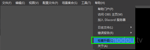 1.启动OBS后打开帮助菜单。