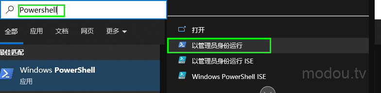 1-在 Windows 搜索中搜索Powershell,然后右键单击并选择以管理员身份运行。