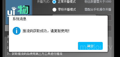 6、获取到推流码后,点击“确定”,此时界面如下: