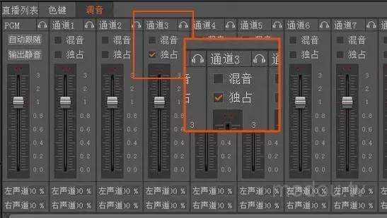 当直播开始后,启动航拍飞行并切入航拍画面到PVW预览,航拍画面平稳时适当时切入PGM播出,可在调音台将现场主播或演播室声道设为独占,保证声音输出。