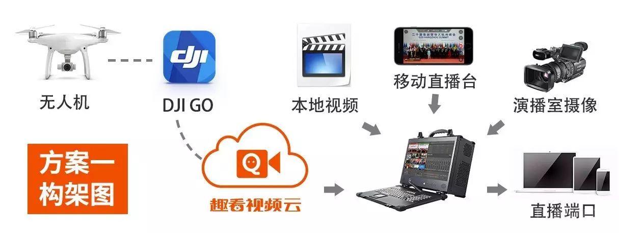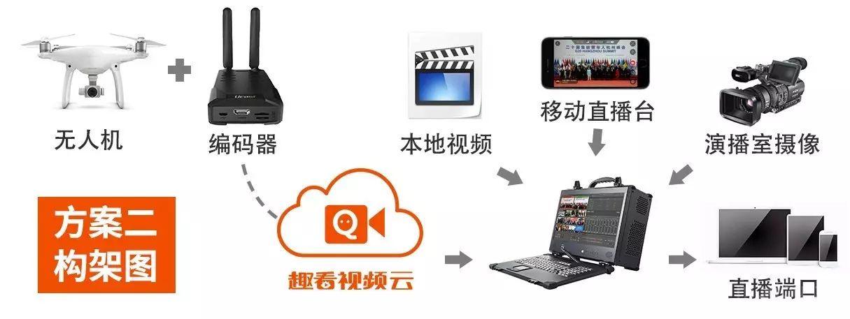 登录趣看采编录播一体机/采编录播一体化软件,配置无人机直播+现场画面直播+主播现场解说+本地视频等视频通道。