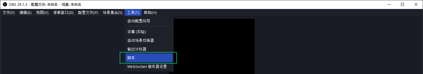 打开OBS,点击菜单中的”工具”—“脚本”