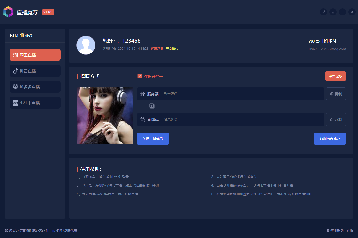 开始直播后,直播魔方就提取到了淘宝的推流码,如下图这样的
