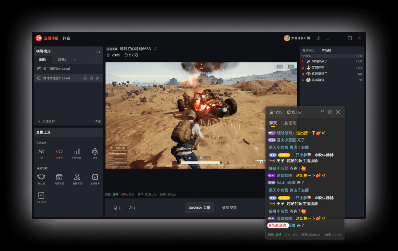 当前首次开播需在抖音、抖音火山版APP上申请开播权限