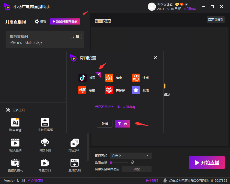 首先我们先添加第一个直播间