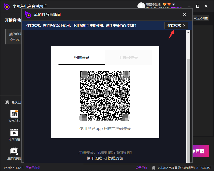 还是同样的操作,扫码用手机模式或者用伴侣模式均可
