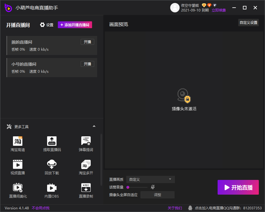 最后点击右下角的开始直播按钮,即可让多个直播间同时开始推流直播