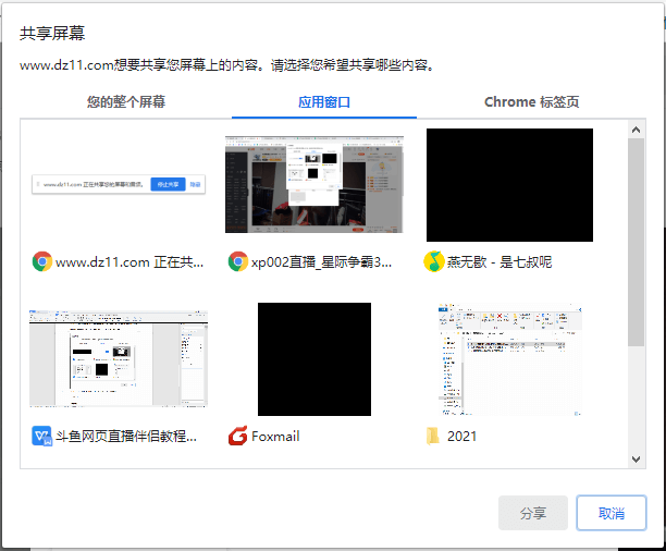 3)如上第3种方式“chrome标签页”即浏览器的标签页,直播网页内容时可按需选择。