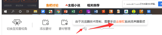 1)鼠标移入在直播区底部操作栏中扬声器入口,在出现的提示中点击“去授权”按引导完成授权;