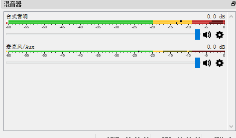 其次通过obs的主界面音量的绿黄红三色可以快速判断音量大小