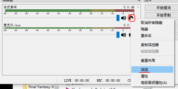 这里需要注意的一点是麦克风声和主声音最大音量数值相差最好不要大于20,在10以内会比较舒服,然后bgm最好比游戏声音小35左右。例如这里游戏最大音量0,说话声最大音量-10,bgm音量-35