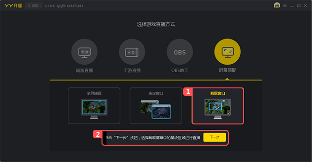 截屏捕捉,可以自己截取想要直播的画面区域。