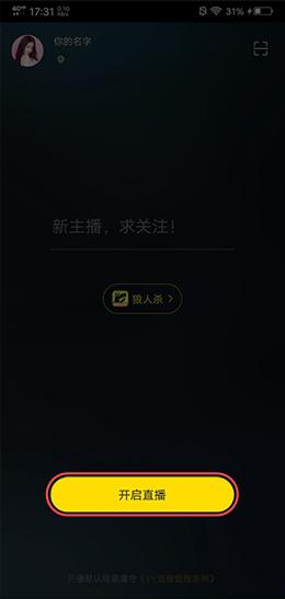 ①打开YY开播,点击“游戏直播”进入到游戏直播模式界面: